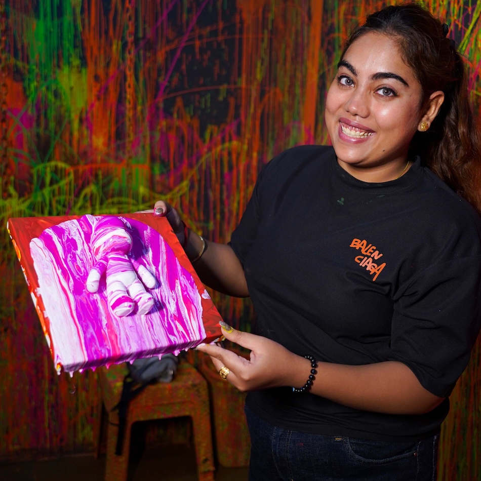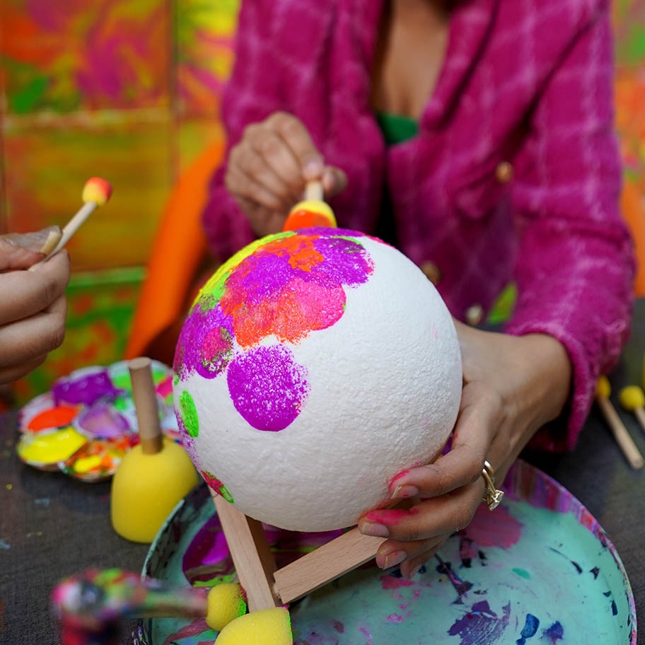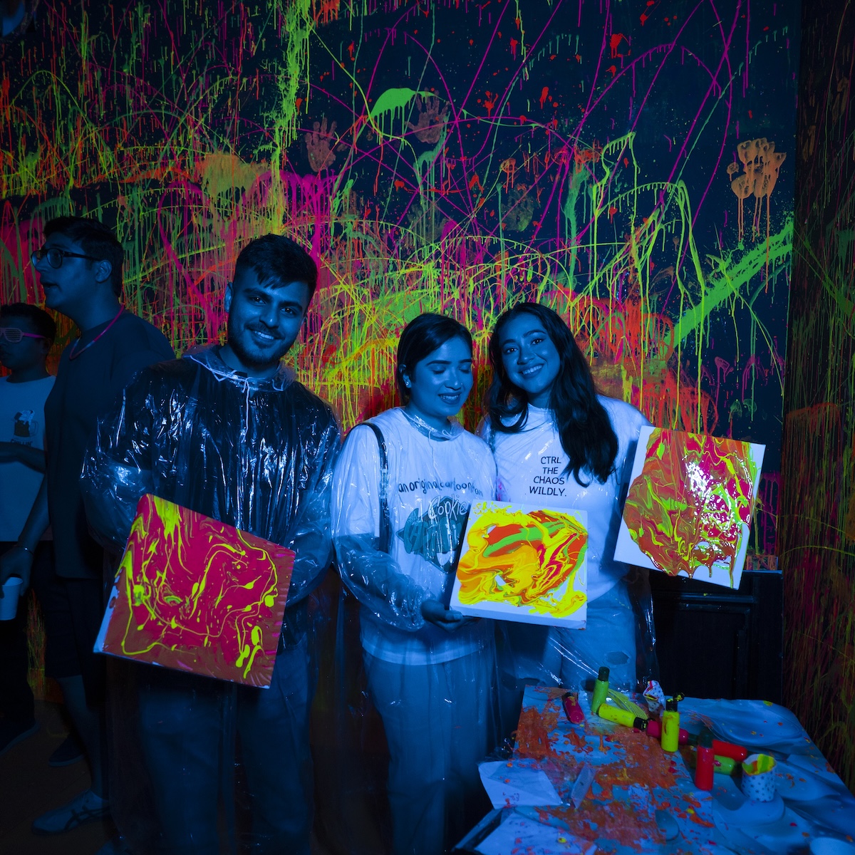 Pour, tilt, swirl! Make glowing galaxies with your hands. UV lights. Vibe-heavy playlist. Zero pressure.
