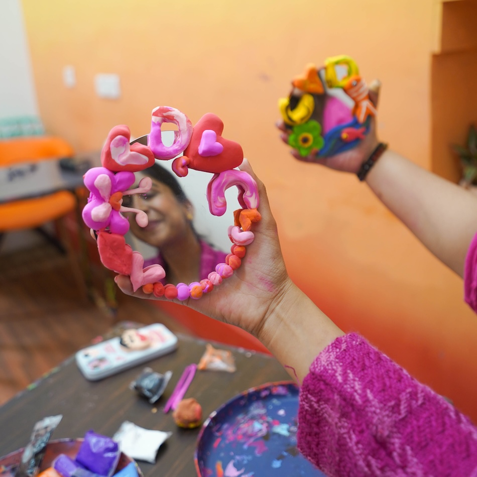 Shape it, stick it, and take home your reflection in clay with your DIY Clay Mirror.